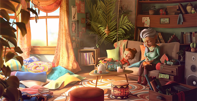 在這里有正在行走的萌萌搖滾仙人掌,七彩的賽道,軟綿綿的陸地,其實這里的一切都是奶奶為孫女編織的完美世界。這段美妙的旅途孫女一定終生難忘,但是再親的人也可能只是我們生命中的過客,不能陪我們走完所有的路,最后奶奶還是離開了孫女,但一起相處的快樂時光,卻給能給我們的生活留下種種感情印記,永遠(yuǎn)不會消失,在最后一個鏡頭孫女也踏上機(jī)車騎行之路,她也要像奶奶一樣,做一個很酷的人。